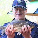 한 눈에도 월척급으로 보이는 붕어를 걸어내�...