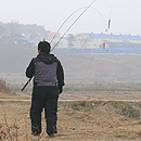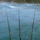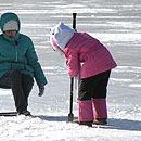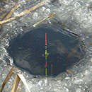 얼음 구멍를 뚫고 낚싯대를 드리우니, 곳바로 ...