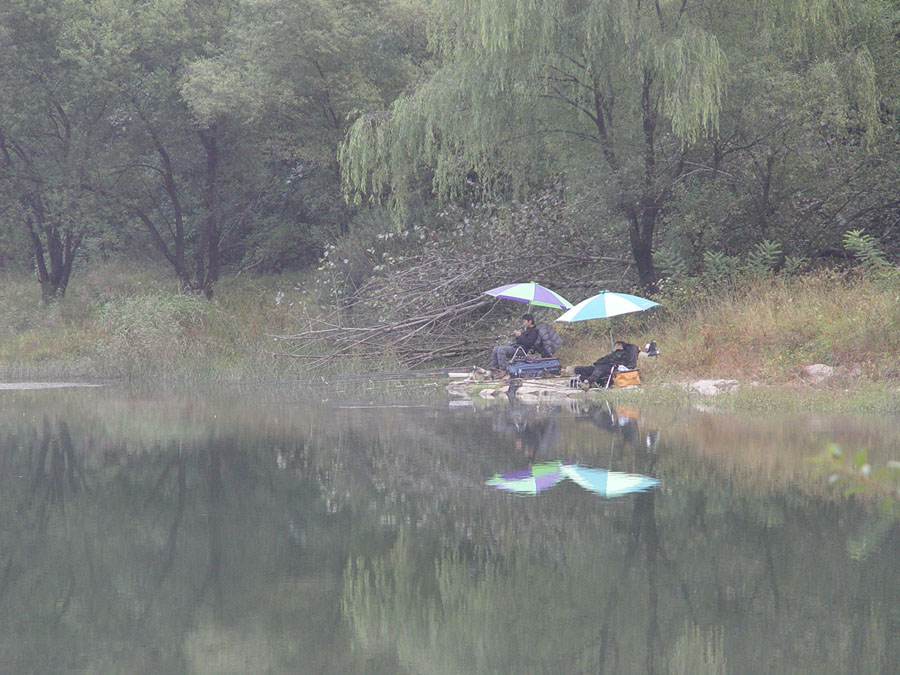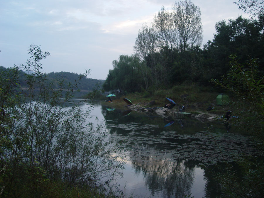 구찌님과 흑케미님의 자리... 우측에서 8치급 붕어가 얼굴을 보였습니다