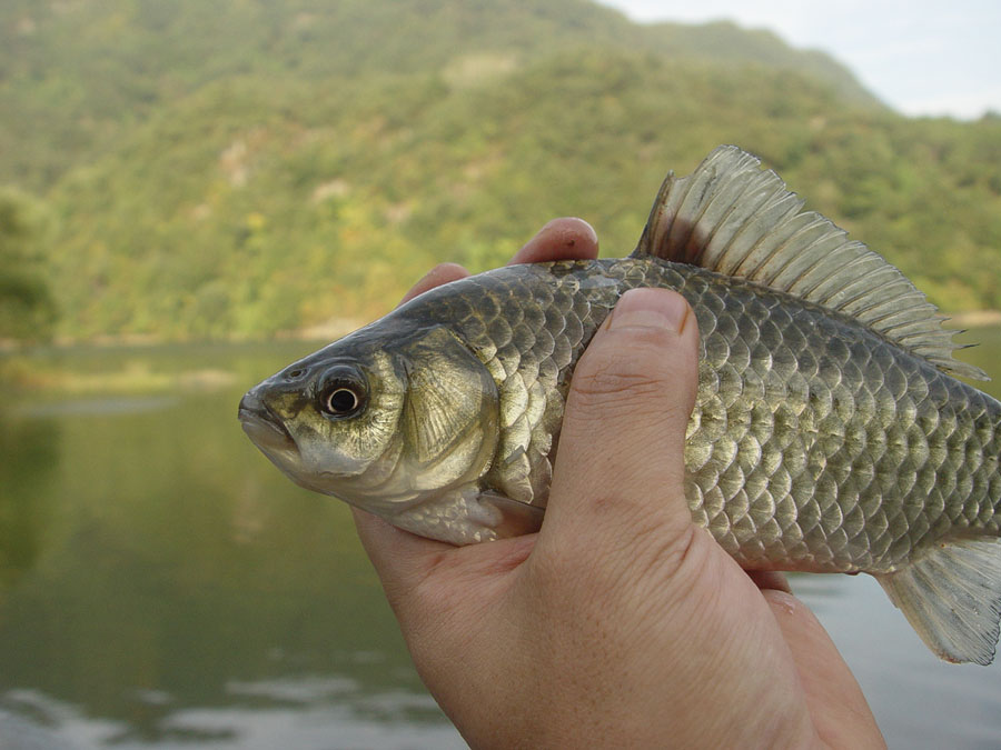 덤프님의 선물... 그 귀하다는 괴산댐 붕어를 낚아 들고... 흐믓~