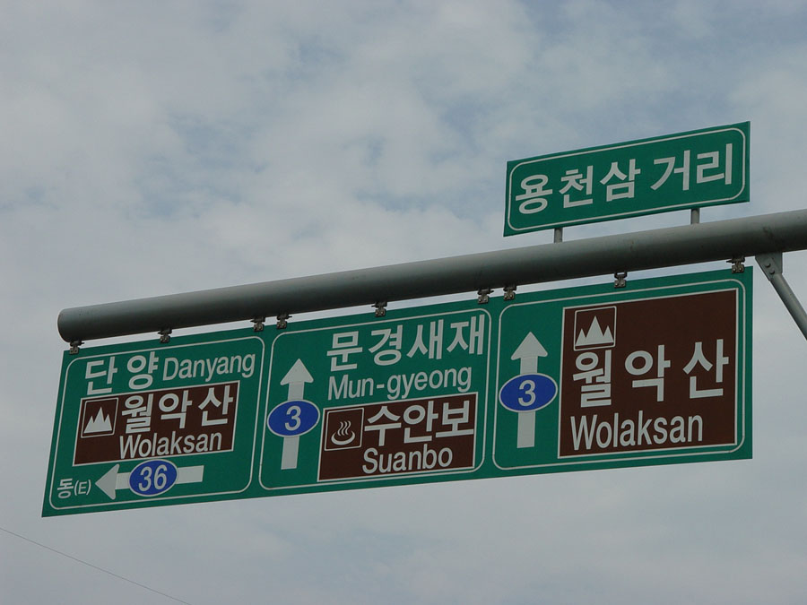 용천 삼거리에서 단양 월악산 방향으로 좌회전