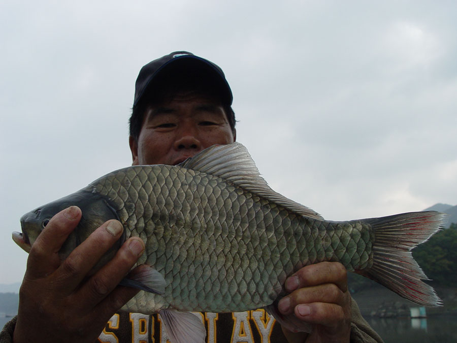 엄청난 당길힘을 보여준 42센티급 떡붕어의 모습입니다