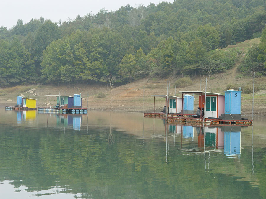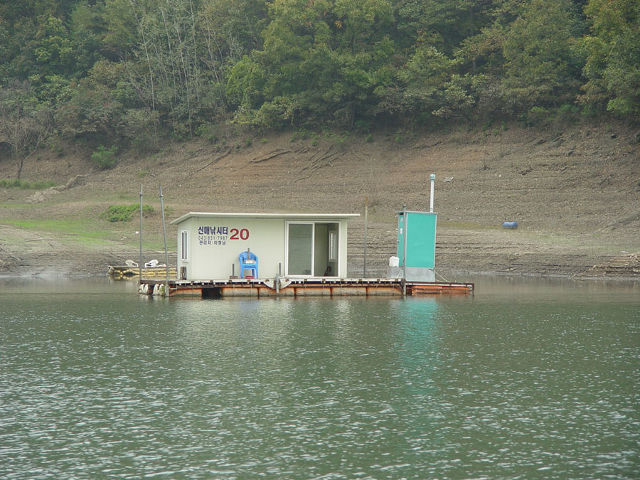 제일낚시터 상류권에 위치한 수상좌대들 모습입니다