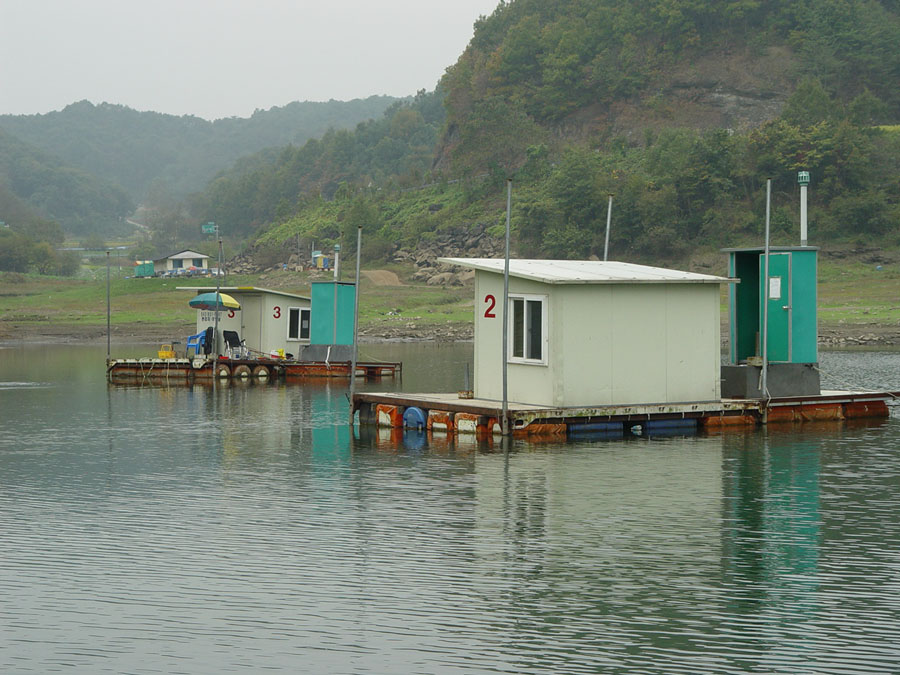신매리낚시터 최상류권에 자리잡은 수상좌대들입니다