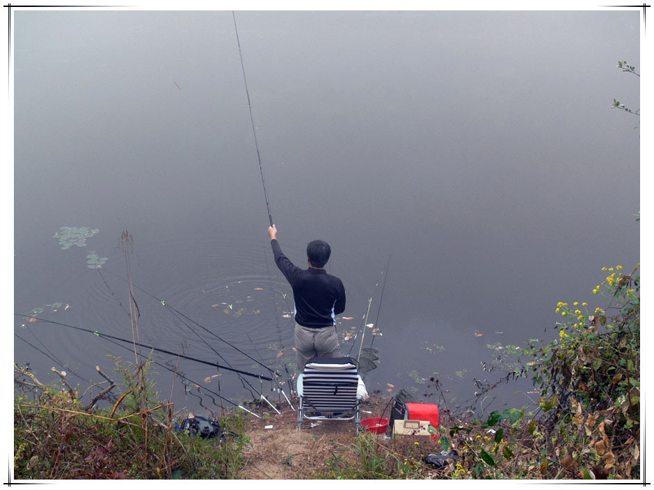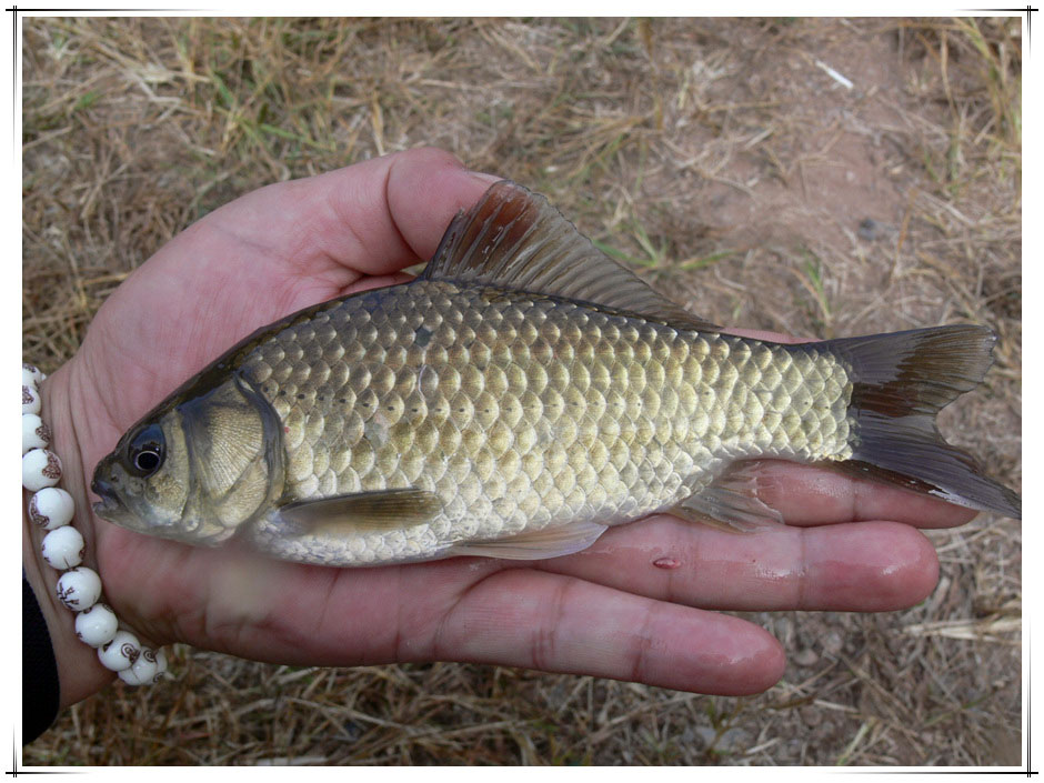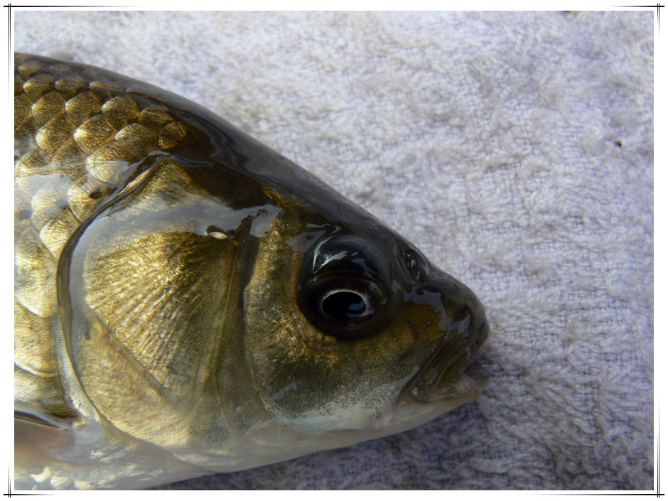 챔질!! "핑~" 제법 반항을 하며 올라온 것은 7치급 늘씬한 황금 붕어.