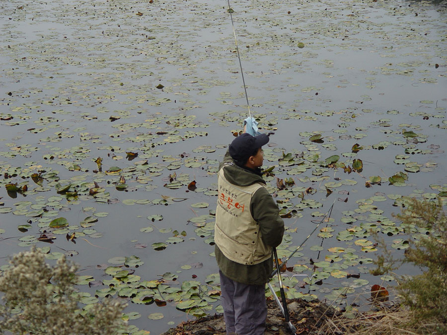 오전 입질을 기대해 보았지만 전혀 연안 수초 속에서는 붕어가 움직이지 않고
