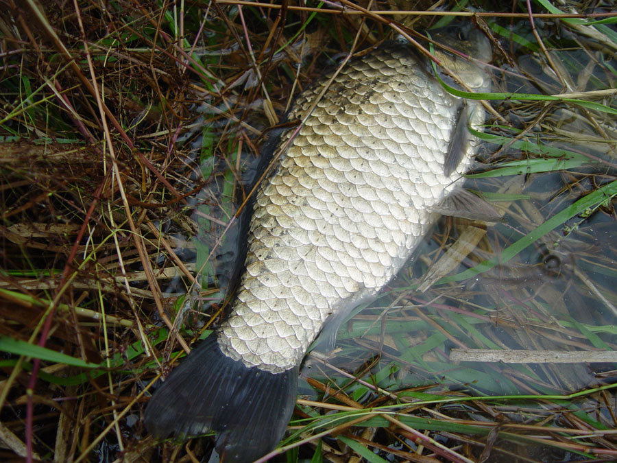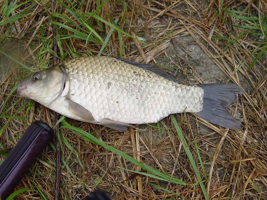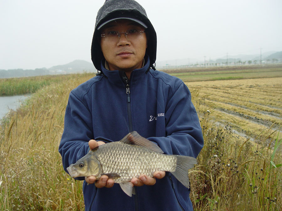 구찌님이 새벽녁에 걸어낸 둠벙의 8치급 붕어의 모습