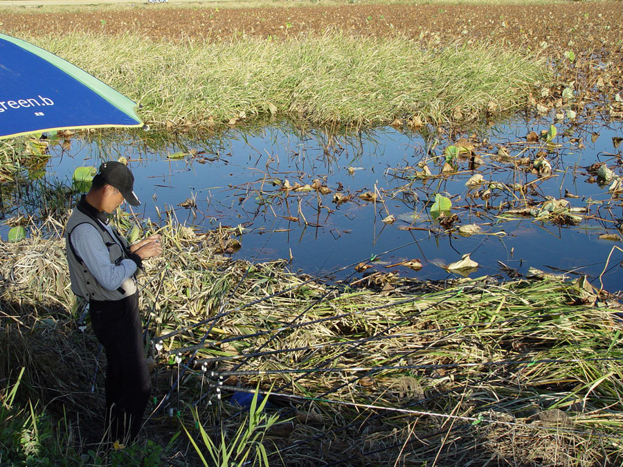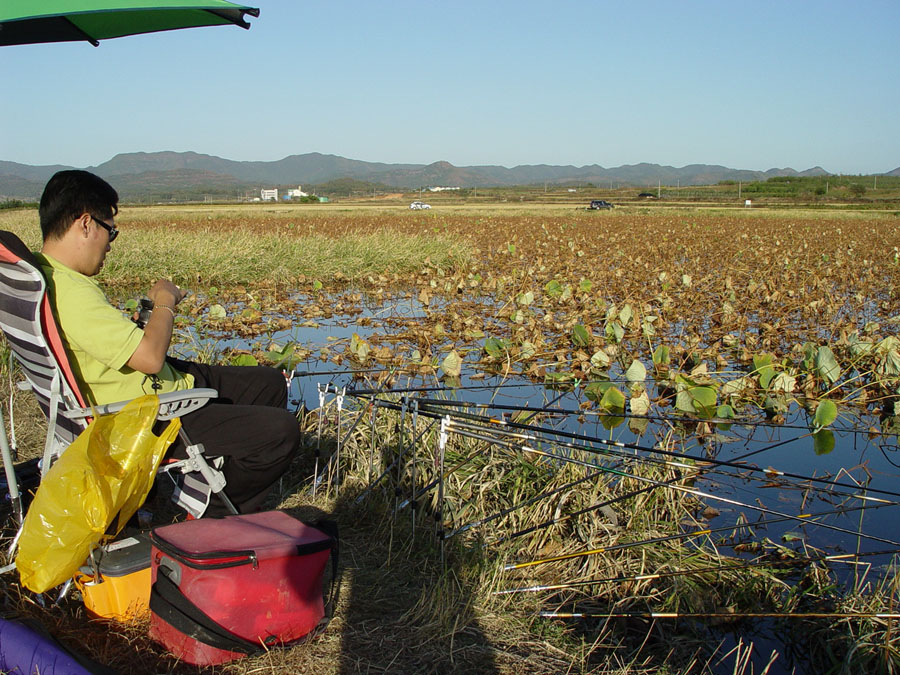 이번에 입큰붕어가 처음으로 만들어 출시한 낚싯대를 시험해 보기 위해 주변의 만류에도 불구하고 연밭에 구멍을 만들어서 15척 1대를 편성했다.