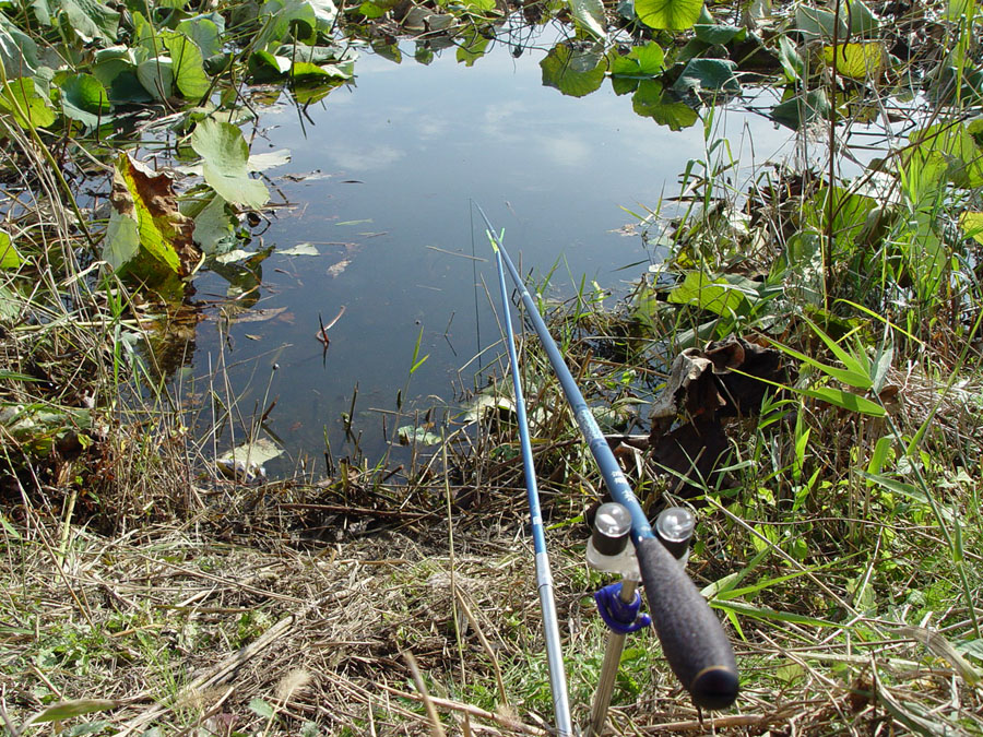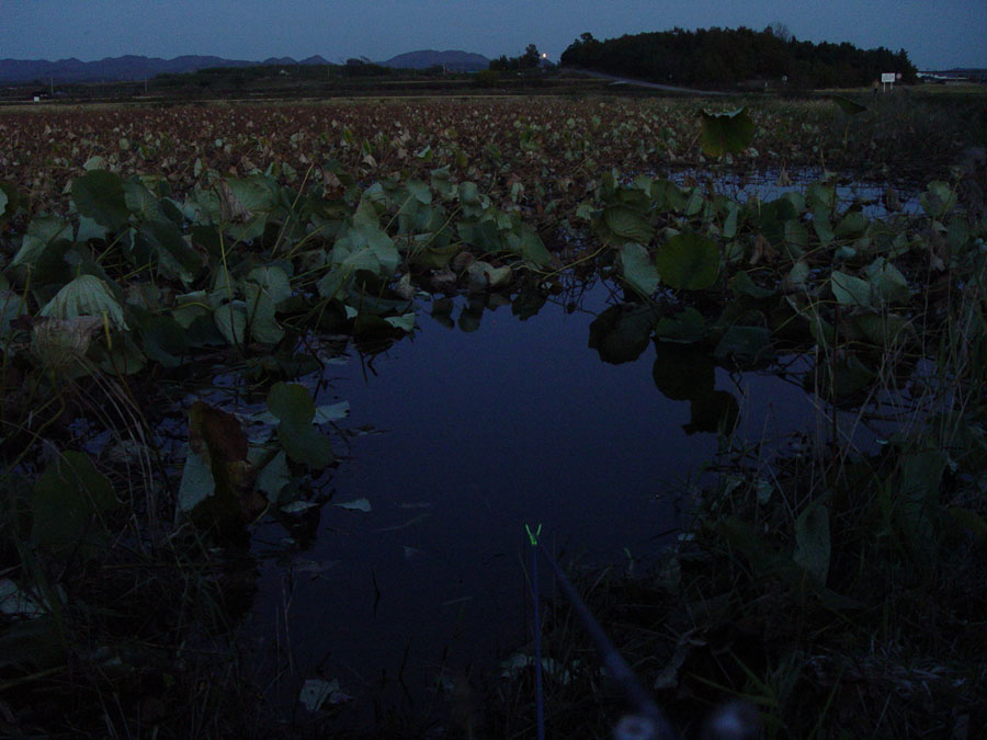 벼락못은 전체적으로 수심이 60 - 90센티 정도였으며 바닥에 삭아 있는 연잎으로 인해서 반드시 작업을 해야만 채비의 안착이 가능한 상태이다.