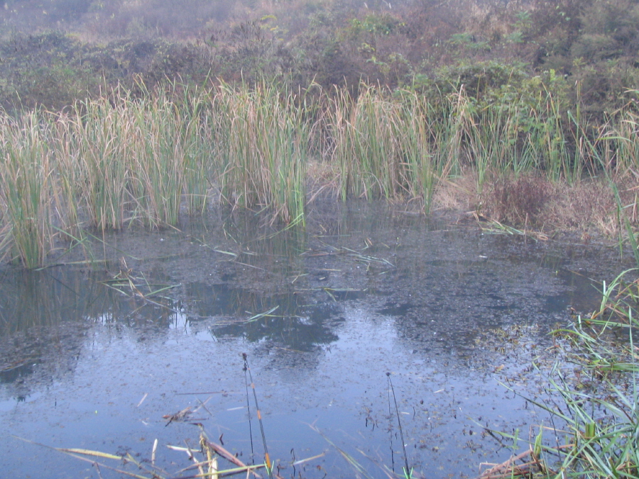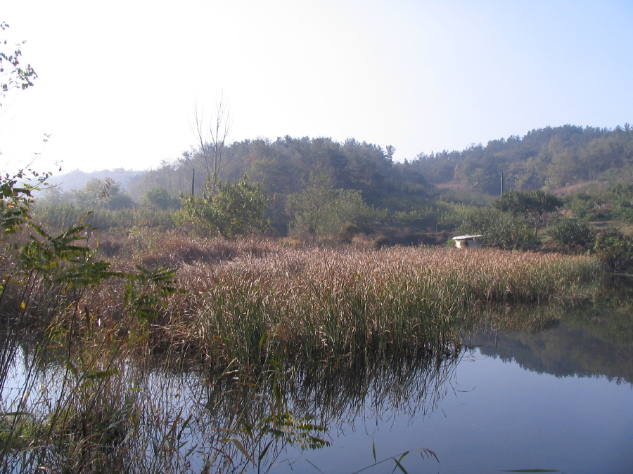 직사각형의 소류지를 반으로 뚝 잘라서 절반은 맨땅이요, 절반은 부들로 꽉차있는데 그림이 한마디로 굿이다. 굿!!!
