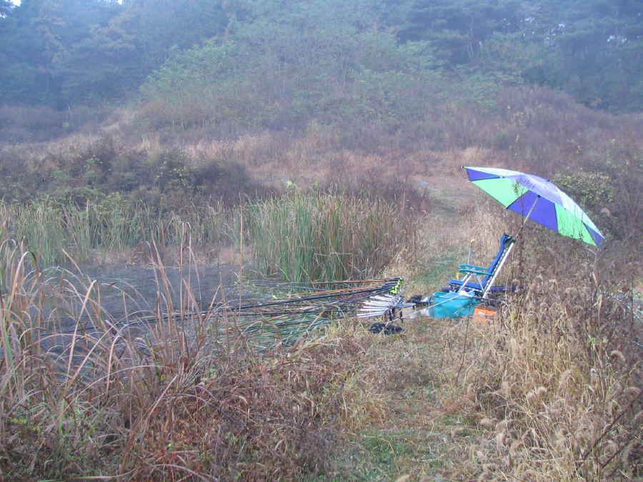 백갈매기 특파원으로부터 소개받은 첫 번째 소류지는 낚시자리가 안 나와 퇴짜를 놓고 두 번째로 소개 받은 곳이 천여평의 자그마한 이 소류지이다.