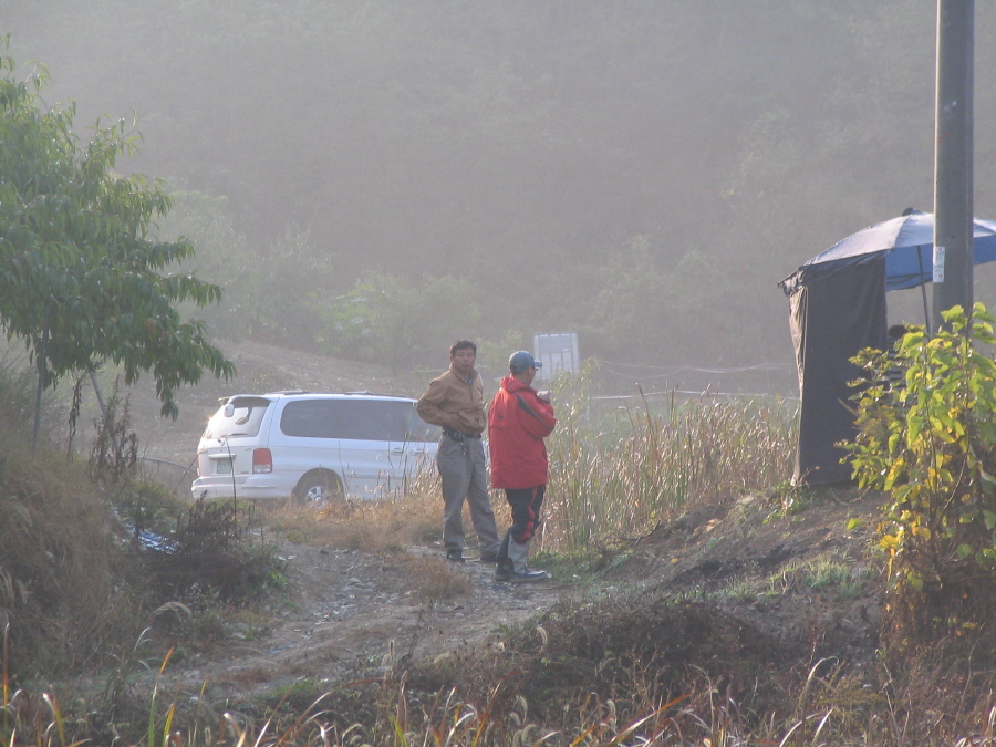 아, 대를 한참 피고 있는데 소류지 쥔장이 나타났다.