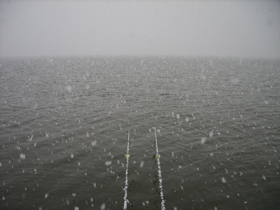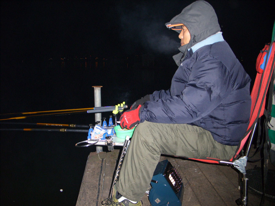 한밤을 그렇게 눈과 보내고 새벽 3시에 낚시 자리에 않아 미끼를 달아 다시 던져본다.