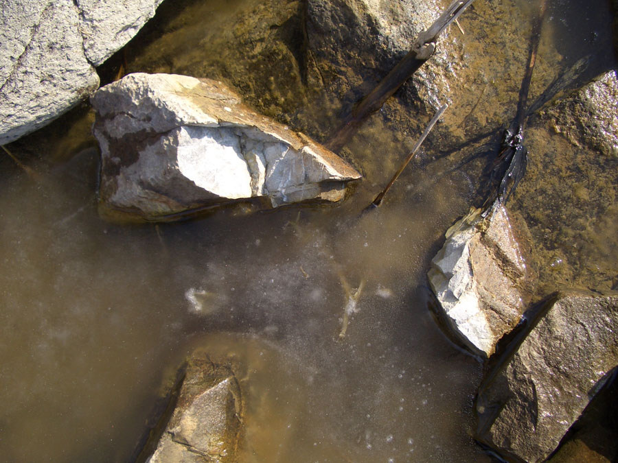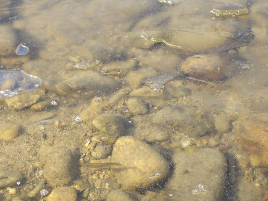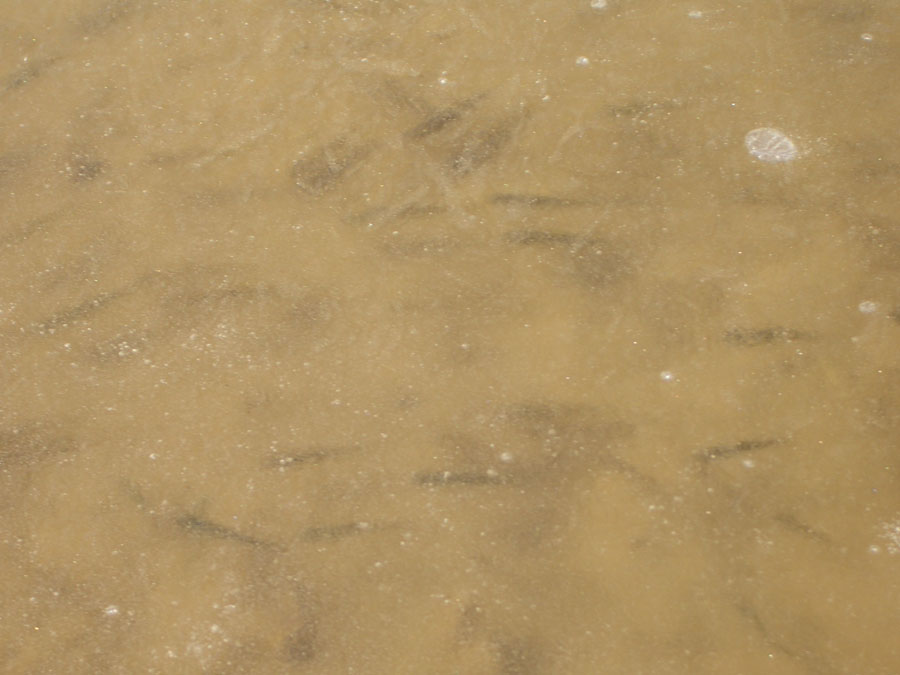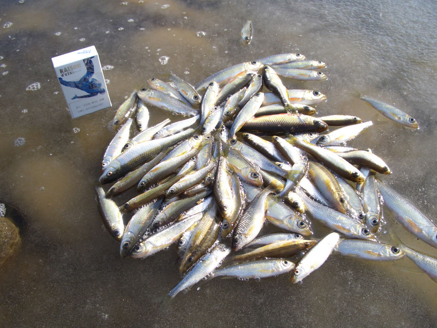 얼음이 온실효과를 발휘하여 그 밑으로 엄청난 마릿수의 피라미와 갈겨니들이 들어와 있습니다.