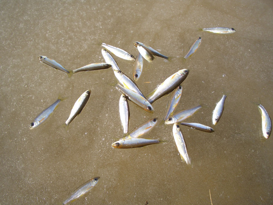 겨울철 수온이 내려갈때 강고기들이 해가 뜨면 온실 효과가 있는 연안쪽 얼음 밑으로 몰려든다.