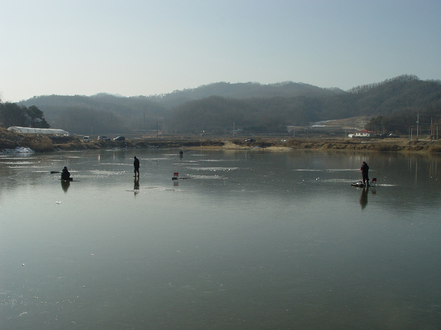 겨울 답지않은 따듯한 아침, 그리멀지않은 곳에서 몇몇의 입큰님들이 얼음낚시를 즐기고 있다는 소식이 들려온다.