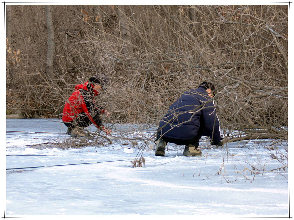 철없는아빠님과 심청붕어님도 수몰나무 근처에 구멍을 뚫고 수심을 맞추고 계십니다.