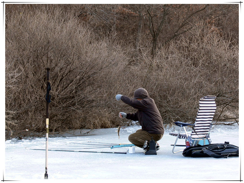 플랑크톤님은 올해 마지막 얼음낚시를 멋지게 마무리 하기 위해 비장의 각오로 채비를 점검하고 있습니다.