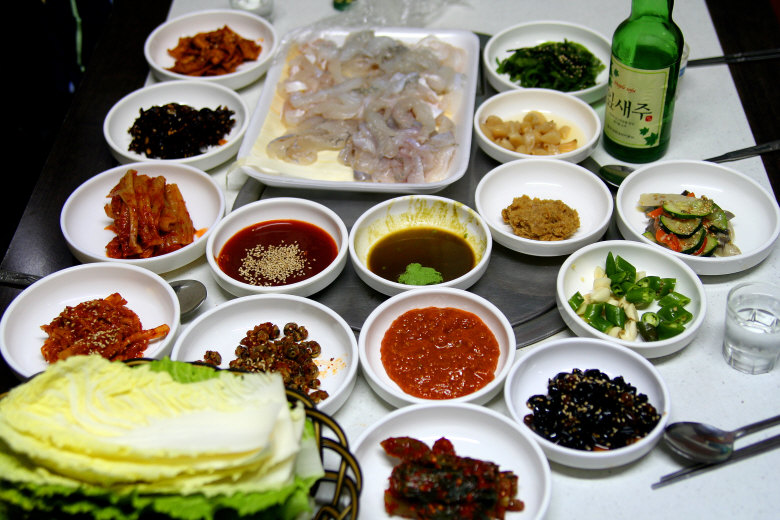 먼길 왔노라고 어판장에서 미리 떠다놓은 도다리회와 전라도식 맛깔난 밑반찬들...