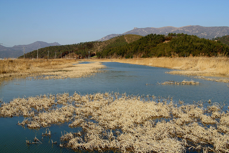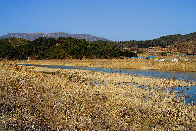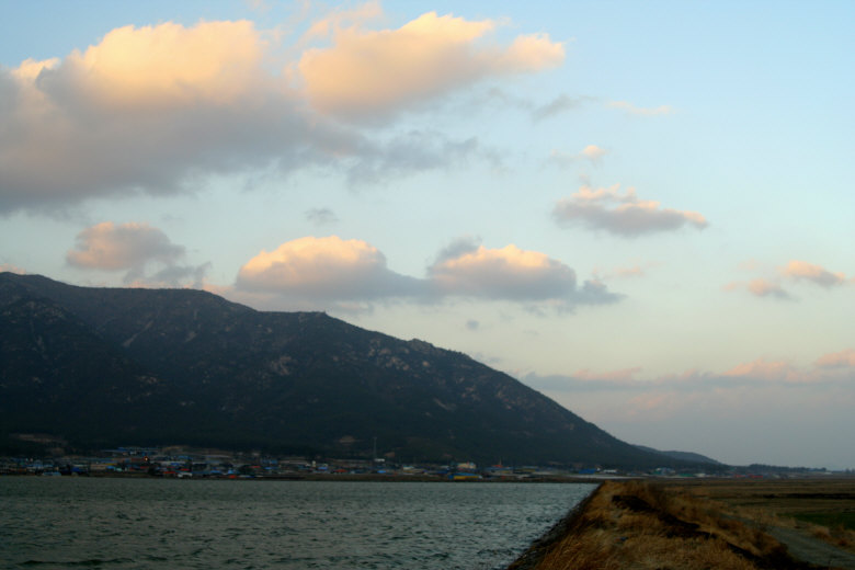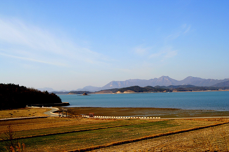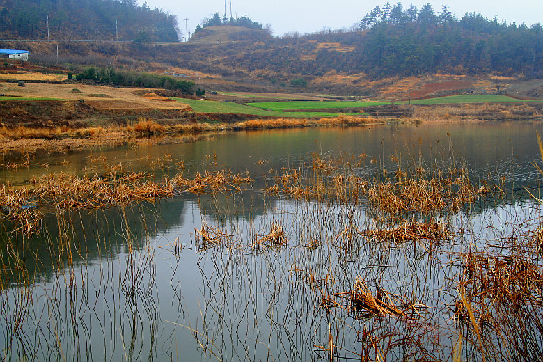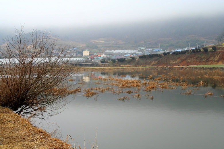 이슬비가 내리는 통에 주변경관이 뿌옇고... 바닷가 옆 각지형 저수지인데 5년전에 준설하였고