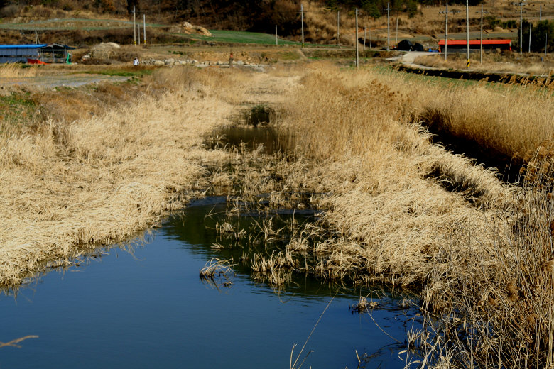 소류지 주변 땟장수초 가득한 수로도 좀 이른 감이 있는 듯 물색이 별로네요