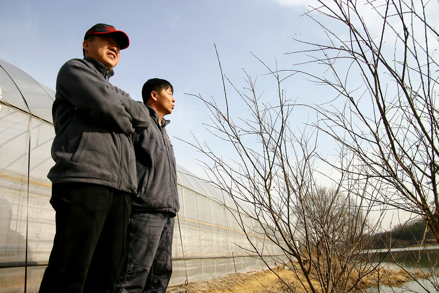 상류권 비닐하우스 앞을 지키고 있는 지우정우님과 봉봉님
