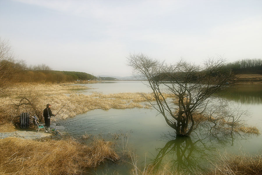 이른 아침에 왔는데 아직 입질은 못봤다고 하시는군요. 간간히 불어오는 바람이 무척 차게만 느껴졌던..
