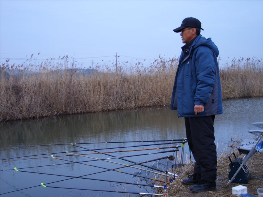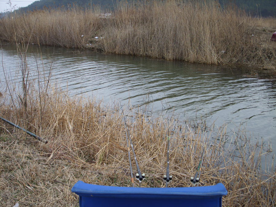 본류권 곶부리 부분의 갈대가 조금있는 곳에 1.5 ~ 2.4칸까지 3대를 펼쳐 새우로 붕어를 낚아볼 생각이다.