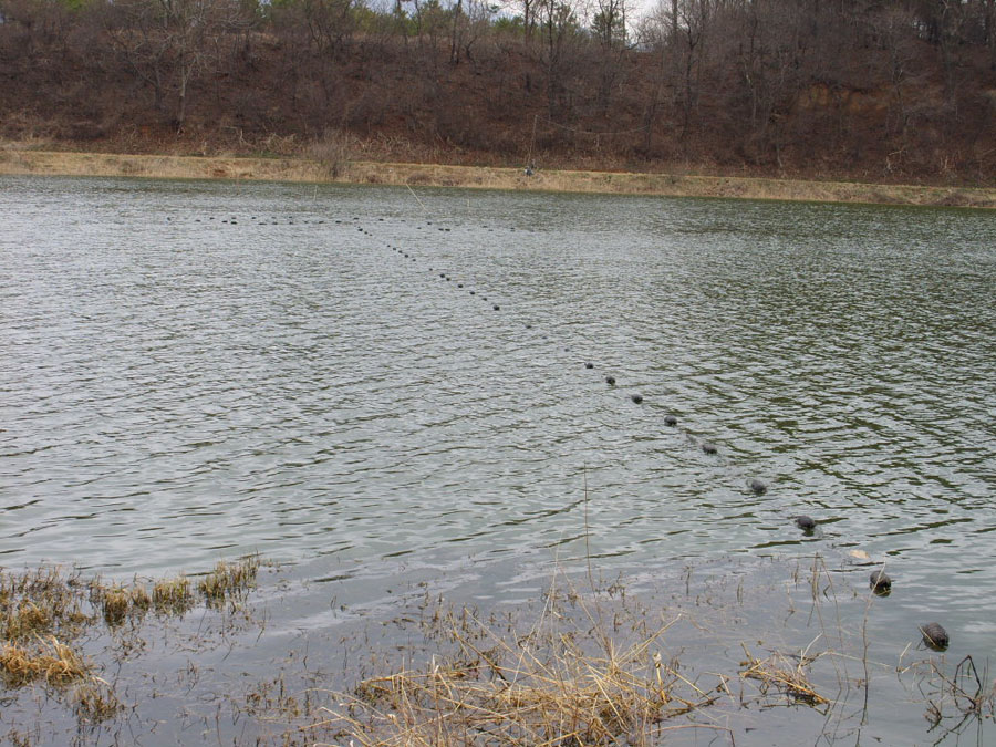저수지 제방 오른쪽 중류권, 갈대가 발달한 곳에 포인트를 정하고 늘 그렇듯이 수초용 채비를 편성해 본다.