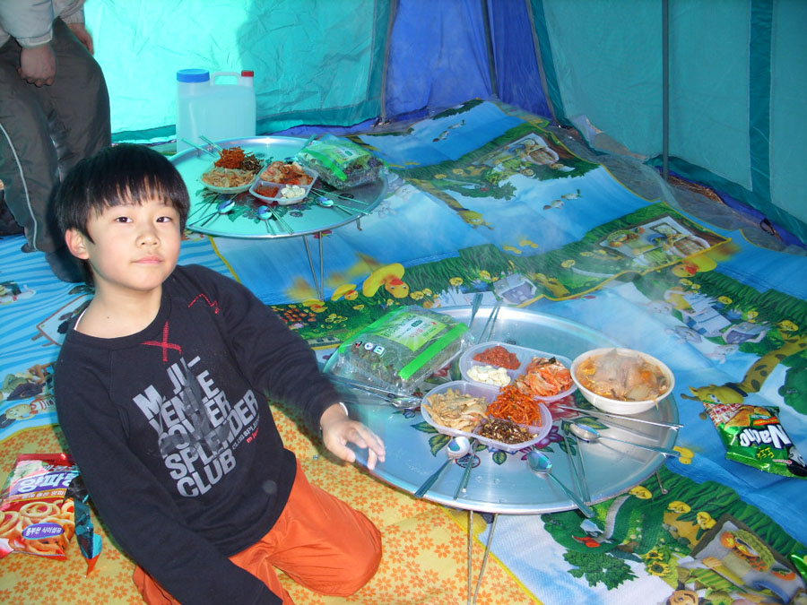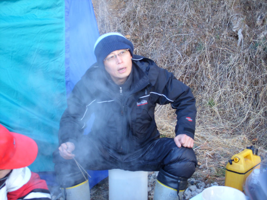 텐트도 지참하지 않은 필자는 11시까지 손난로 하나로 바람과 싸우다.