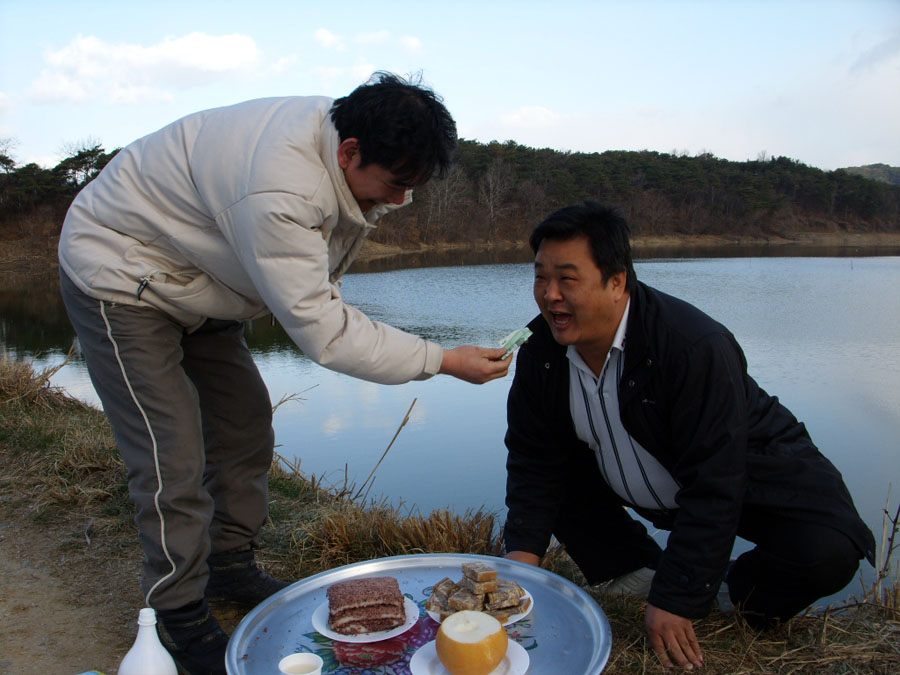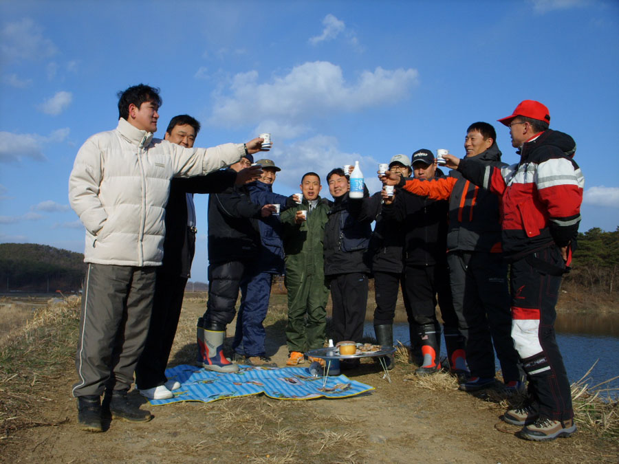 올 한해 어복충만하기를 기원하는 고사를 신문붕어 회장님을 비롯한 서부인들이 용왕신께 절을하며 정출을 마감한다.