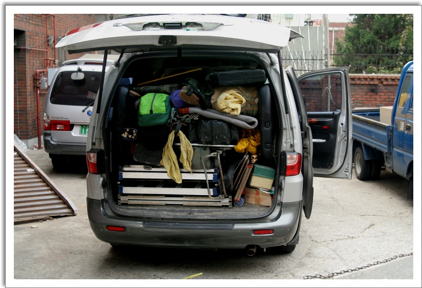 날 따뜻해지면 낚시 좀 데려가 달라는 친목계원 두어명에게 핸드폰을 날려 가게 옆 주차장에 집결시키며, 창고속에 낚시관련장비 차곡히 잔뜩 때려 싣는다.