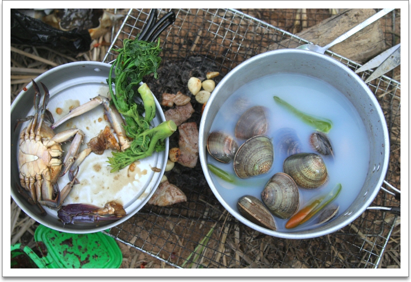 백합조개 맑은탕에 간장게장으로 무장한 저녁식사까지 마치고 밤낚시에 돌입합니다.