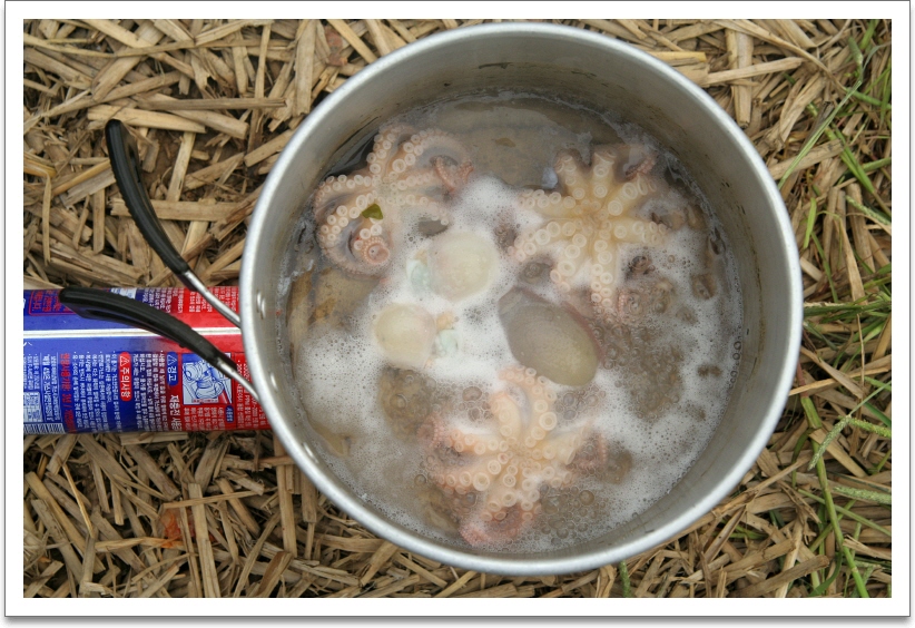 하루종일 라면하나로 끼니를 걸렀다나 ~어쩠다나~ ㅠ ㅠ 사들고 온 쭈꾸미 데쳐서 간단하게 요기합시다.