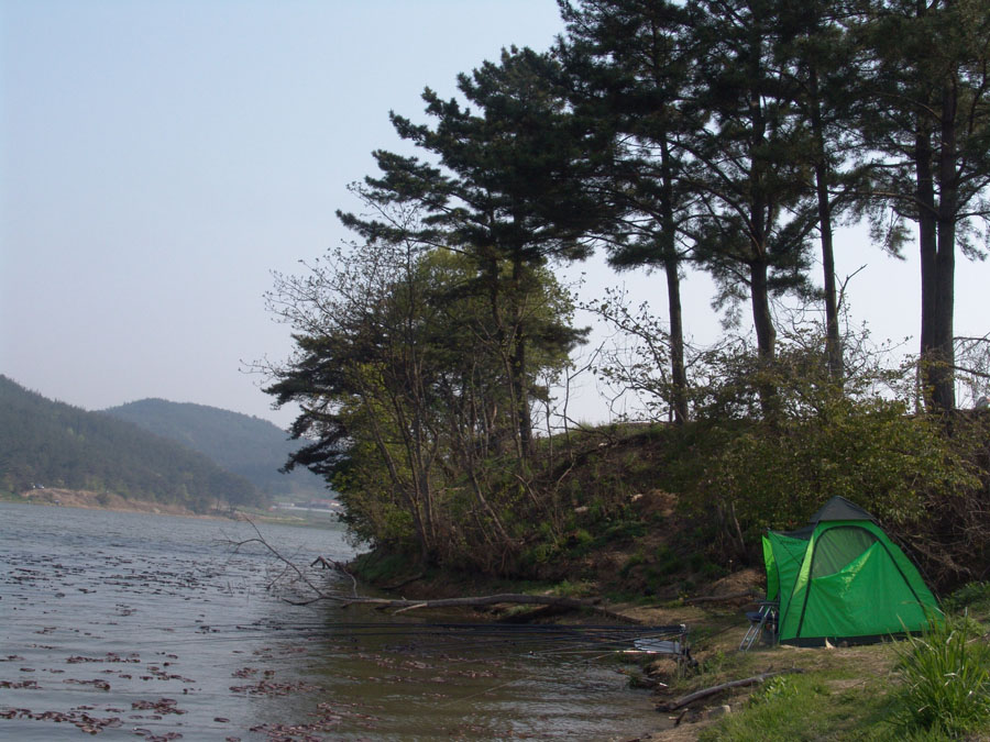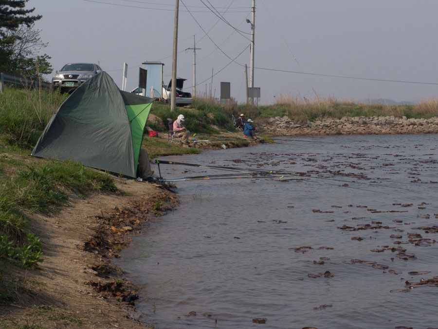 물색과 기타 조건이 흡족한 도로옆 제방 좌측권에 대편성을 하고 옥수수와 콩으로 붕어들의 입질을 기다려 보기로 한다.