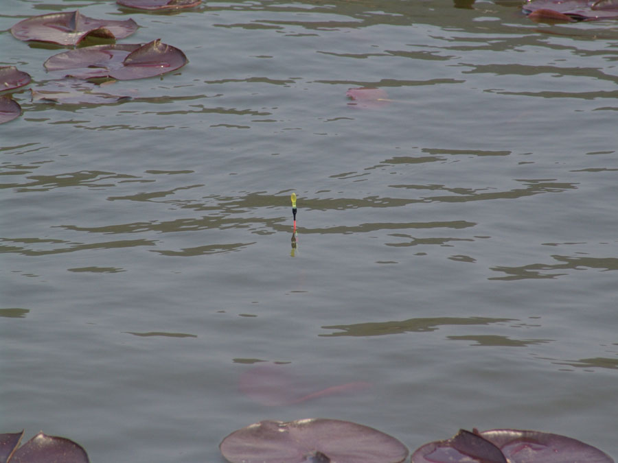 3.8칸대에 지렁이를 10마리 꿰어서... 수몰나무와 연밭 사이 빈공간으로 투척을 하자마자