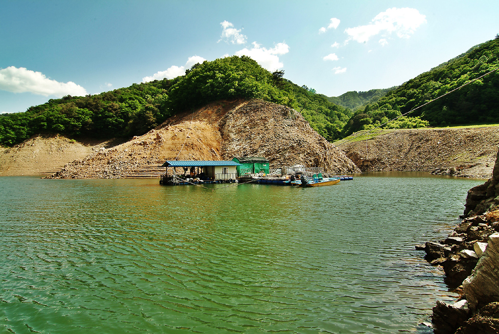 추곡리 이곳에서 각 골짜기로 배를 타고 들어가며 이곳에서 낚시를 합니다.