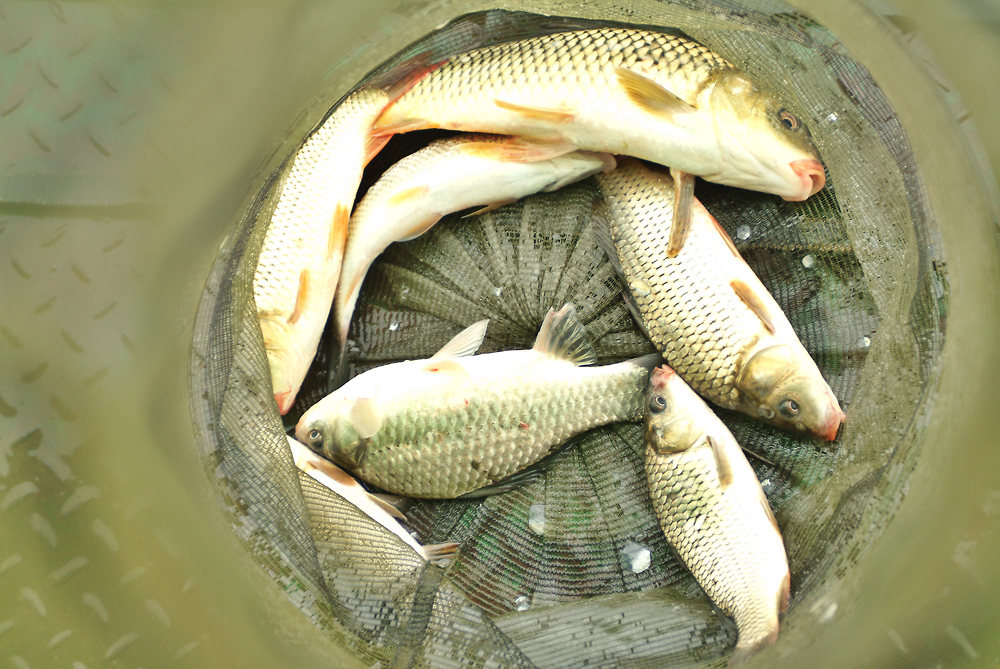 취재진 바로 옆좌대 조사님의 조과~ 8치급 붕어와 잉어들이 보이네요.