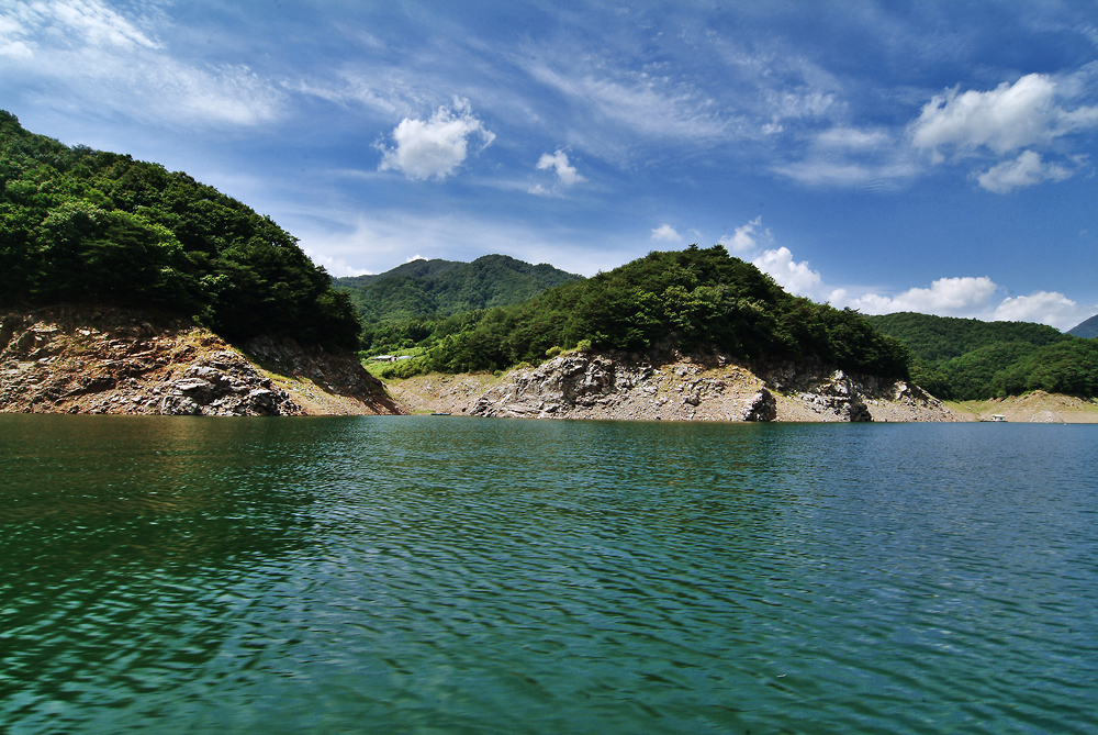 이제 배터에서 아름다운 파로호를 가로질러 쏜살같이 달려 갑니다.