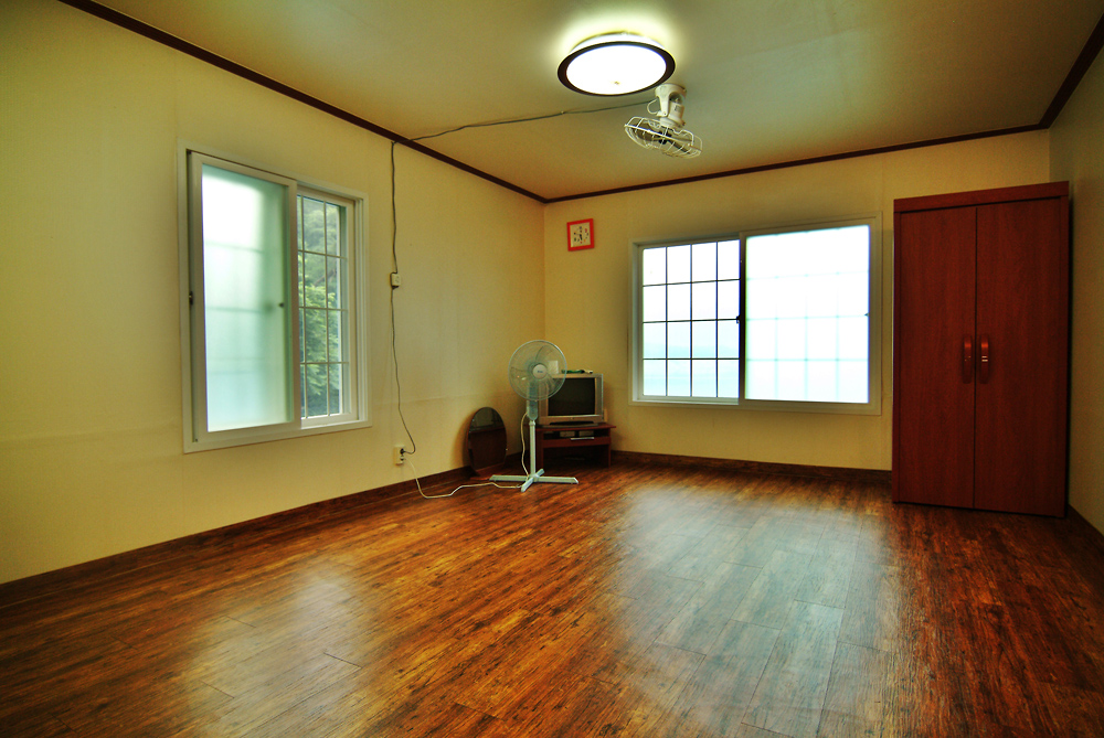 팔방미인팀이 묵은 방 실내 모습 (선풍기, 냉장고, TV, 싱크대...)