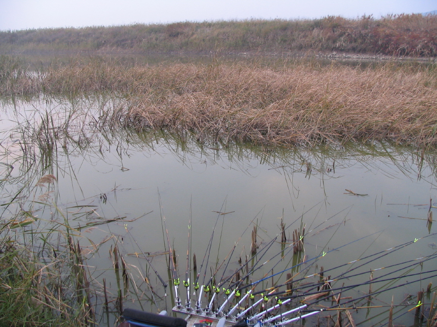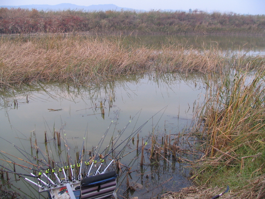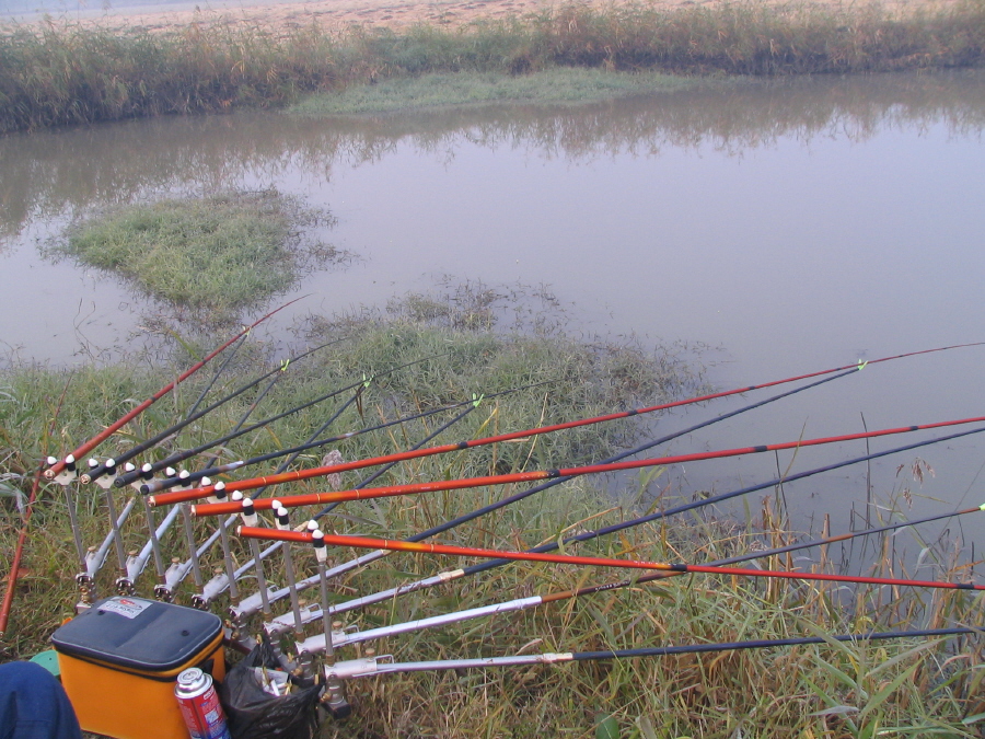 꼭 왼쪽 포인트에서 먼저 월척급 입질이 들어 온 다음 5분쯤 후에 오른쪽 대에서 같은 크기의 붕어들이 입질을 해 준다.