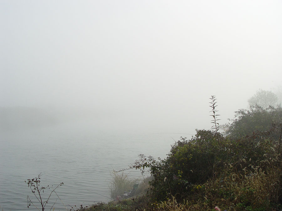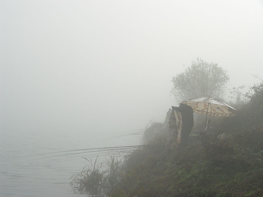 이슬에 흠뻑 젖은 장비들을 말리기 위해 안개가 걷히기만을 기다리면 낚시를 해 보았지만