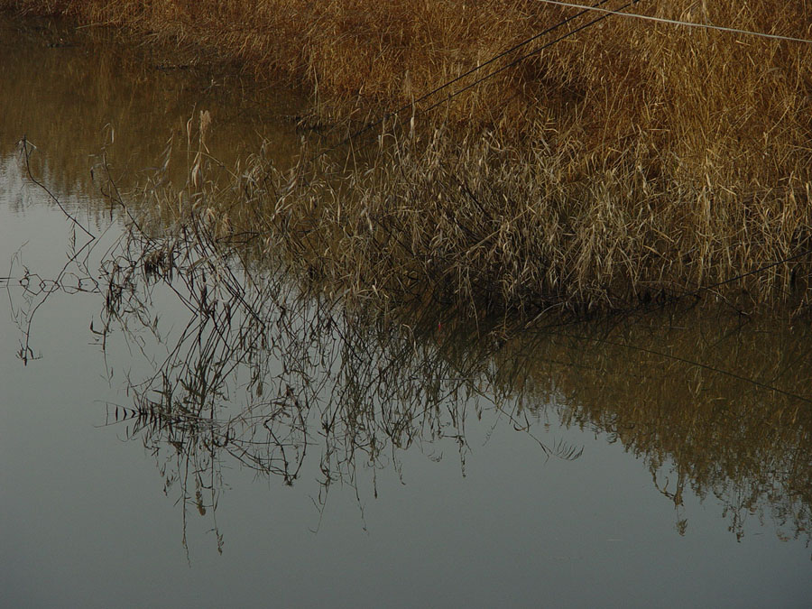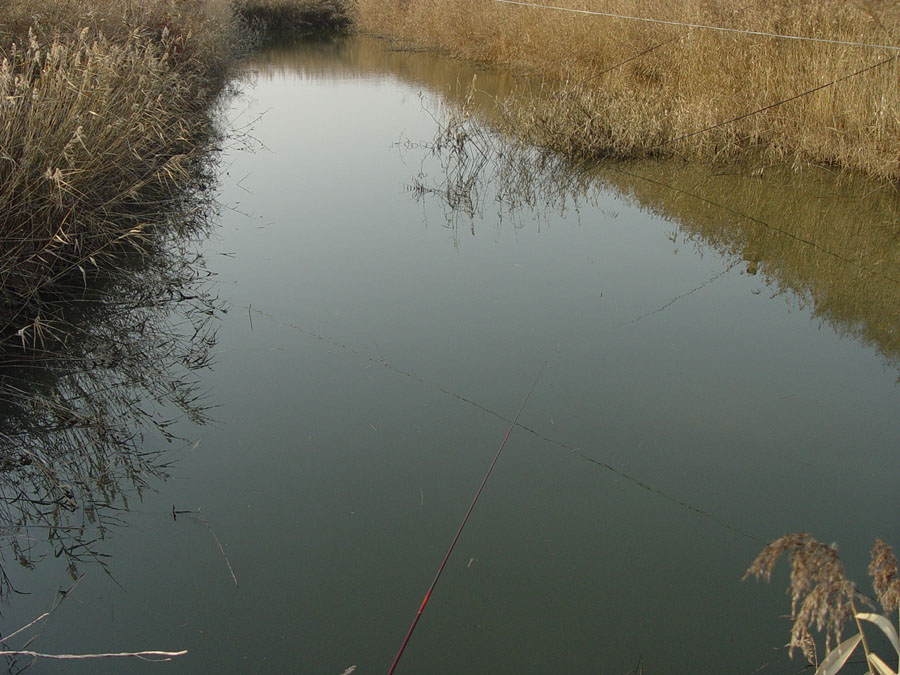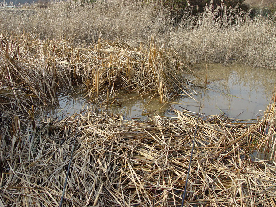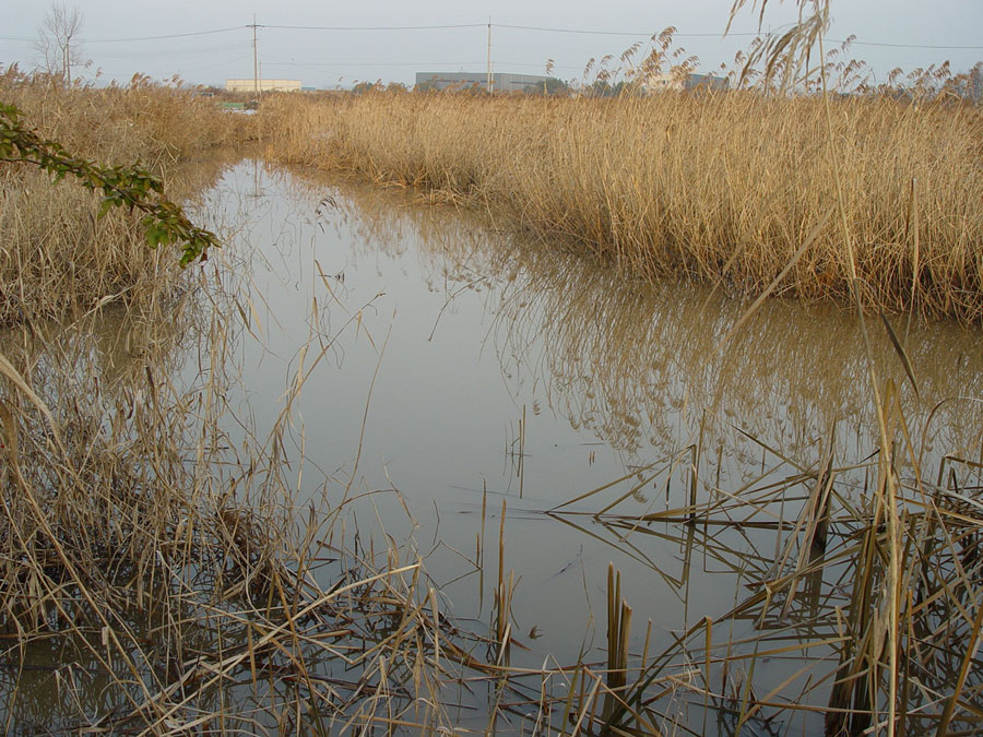 갈대와 부들이 잘 분포되어 있는 좁은 수로입니다