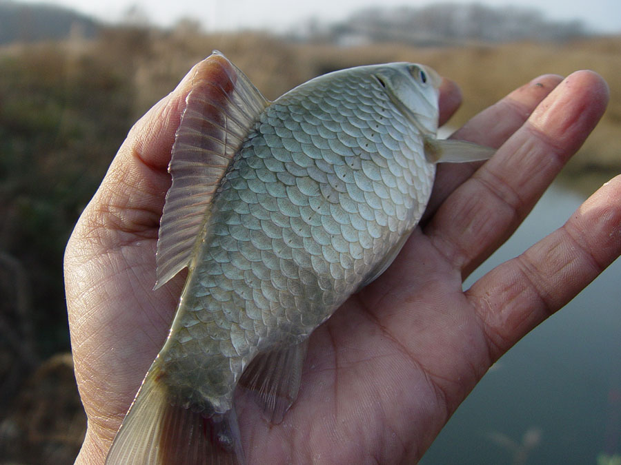 둠벙에서 나온 잘 생긴 7치급 붕어 입니다