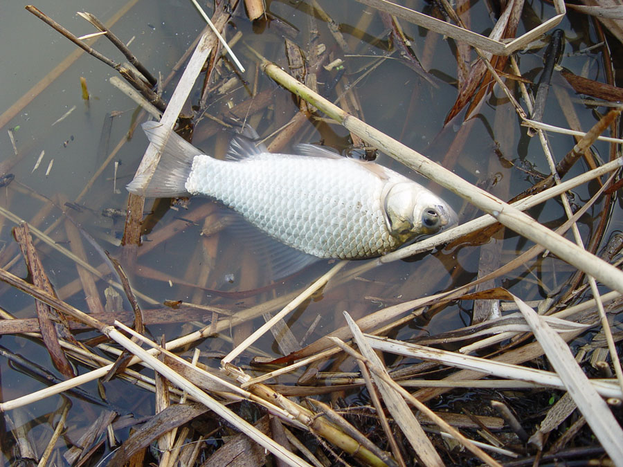 붕어 보기 힘든 시기에 붕어가 있는 둠벙.