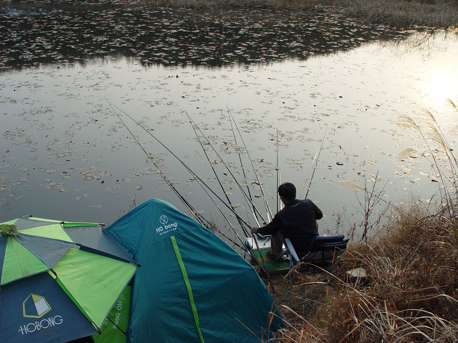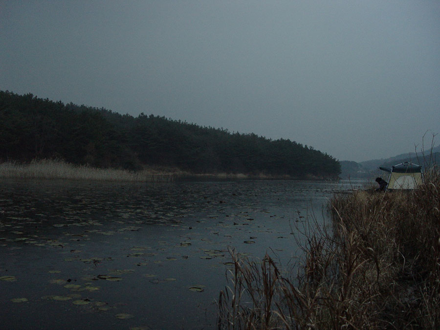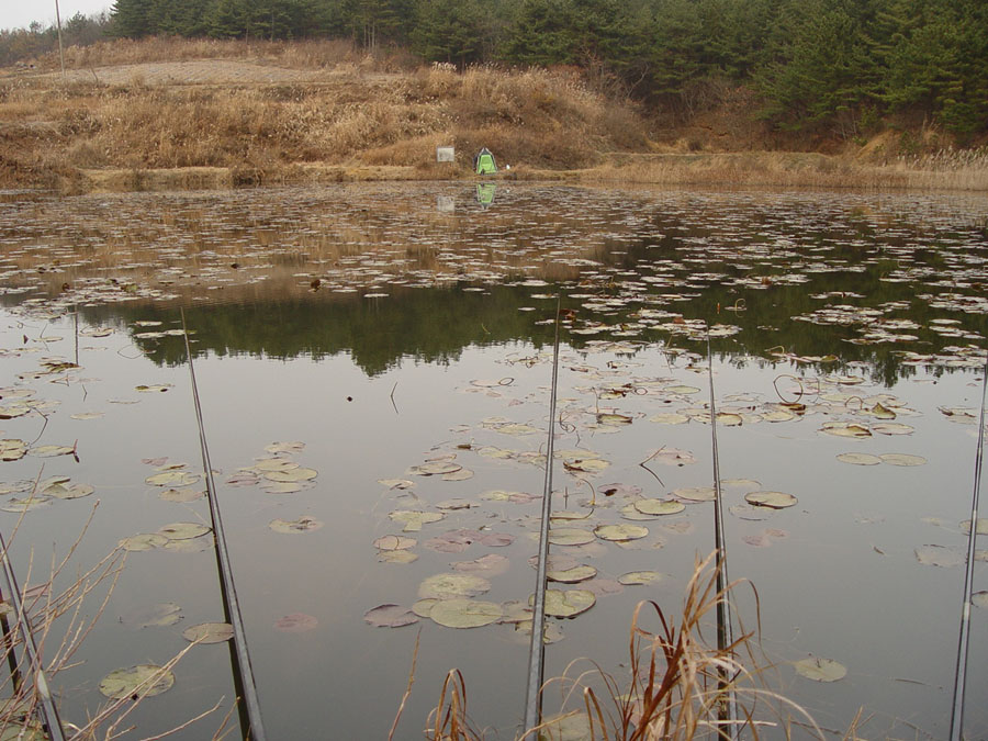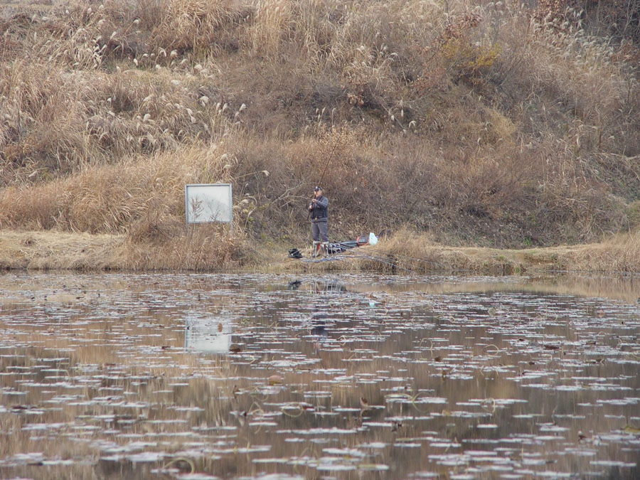 82yu님 포인트에서는 제법 굵은 씨알의 붕어들이 간간히 걸려 나오는데 콩밭님과 필자 그리고 필자 우측에 자리잡은 조사들은 전혀 입질이 없다.