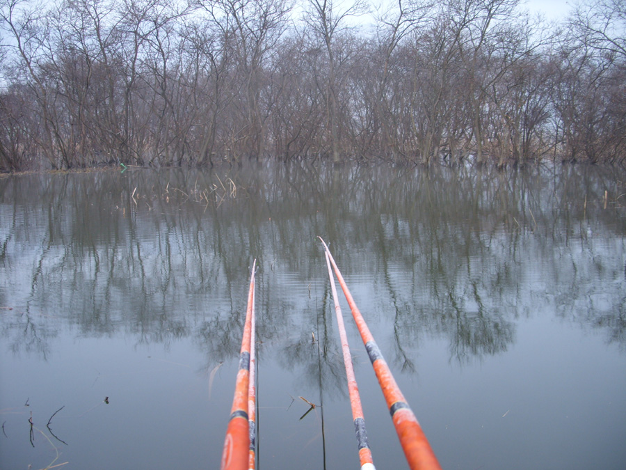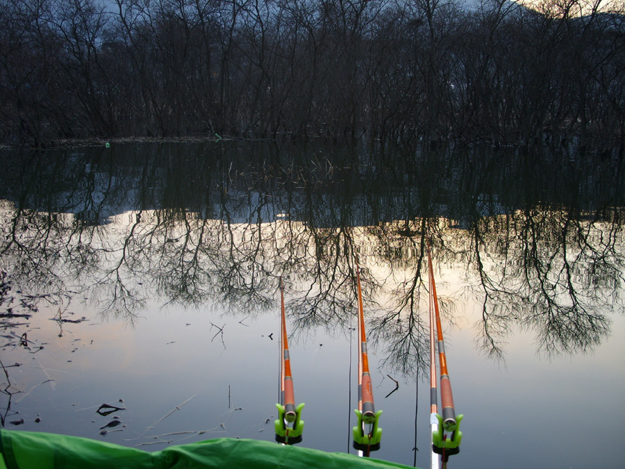 논뚝이 잠기고 있는 시점에 갈대 사이에 위치한 좌대에 올라 각자에 취향에 맞는 포인트에 낚시를 포진해 본다.
