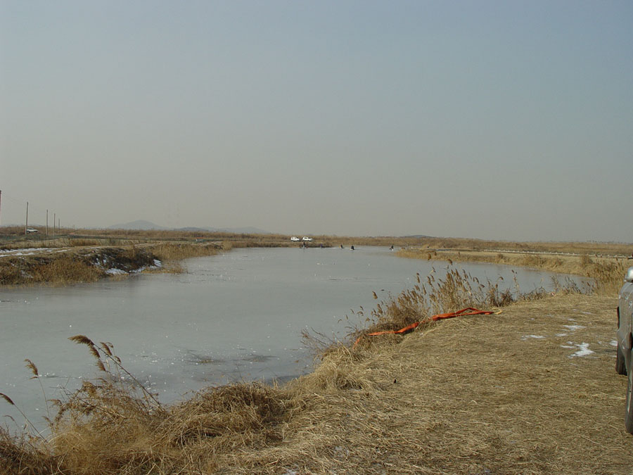 수초대는 아직도 얼음이 조금 약한 상태이고 중앙부근은 얼음낚시를 하는데 문제가 없을 정도다.