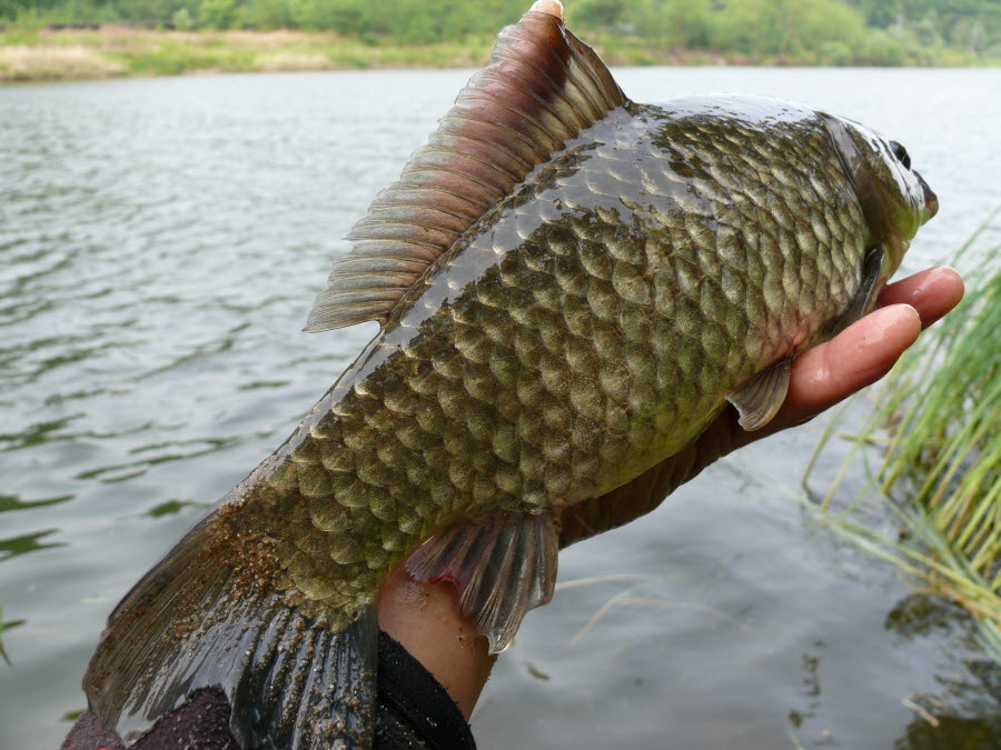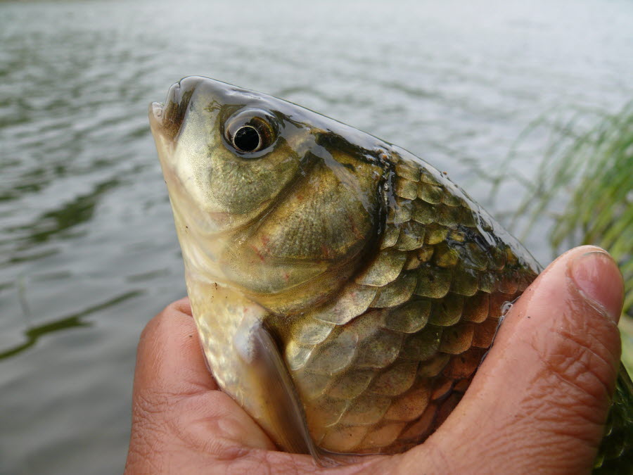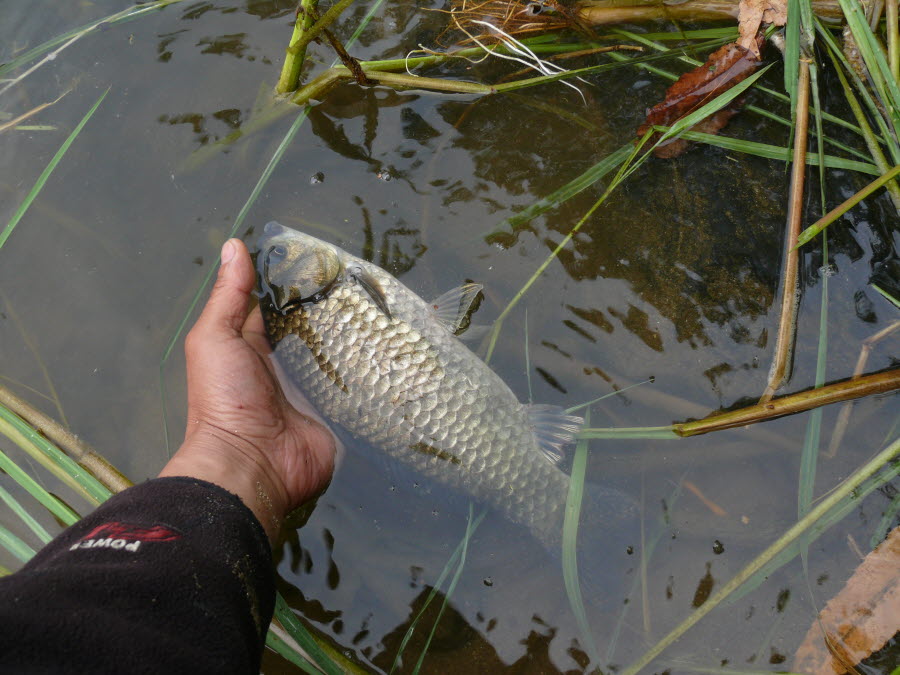 아침에 멋진 입질을 보여준 9치급 붕어의 모습입니다.