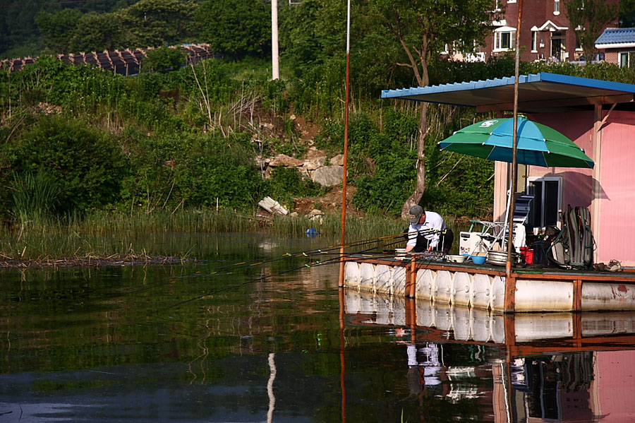 슬며시 다시 나와서 찌를 보니 하늘을 향해 높이 솟아 있었다.